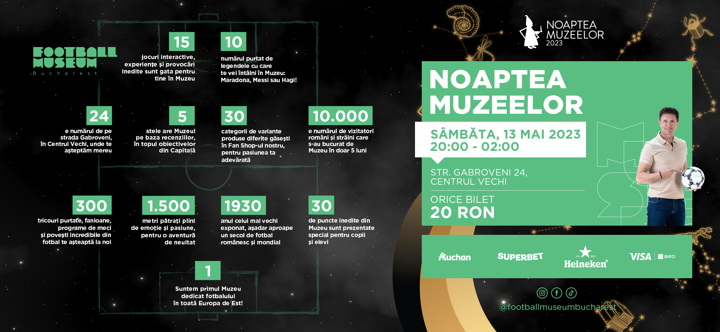 Pe 13 mai, de la ora 20 seara si pana la ora 2 noaptea, Muzeul Fotbalului a fost deschis in cadrul programului Noaptea Muzeelor. 3.000 de vizitatori au venit pe Gabroveni 24 in Centrul Vechi pentru a descoperi sutele de exponate și zecile de experiențe din primul muzeu de fotbal din Europa de Est.