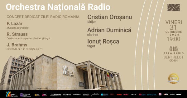 Sub bagheta dirijorului Cristian Oroșanu, Orchestra Națională Radio prezintă concertul aniversar devenit o tradiție a instituției. Veți asculta la Sala Radio Richard Strauss: Duet-concertino pentru clarinet și fagot (soliști: Adrian Duminică – clarinet și Ionuț Roșca – fagot) și Brahms: Serenada nr. 1. Evenimentul va aduce în atenția publicului și lucrarea Musique pour Radio, care va deschide programul serii, semnată de compozitorul român Filip Lazăr (1894, Craiova – 1936, Paris).