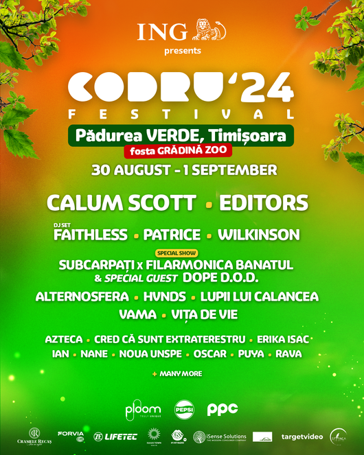 CODRU Festival anunță nume noi care vor urca pe scenă la Timișoara la ediția de anul acesta. Calum Scott, Editors și Faithless sunt cei mai noi artiști care completează lineup-ul evenimentului ce va avea loc între 30 august și 1 septembrie. CODRU, festivalul care plantează, aduce la Timișoara și anul acesta trei zile de muzică, artă și sustenabilitate. Cei trei se alătură altor nume sonore precum Patrice, Wilkinson, Vița de Vie sau Vama.
