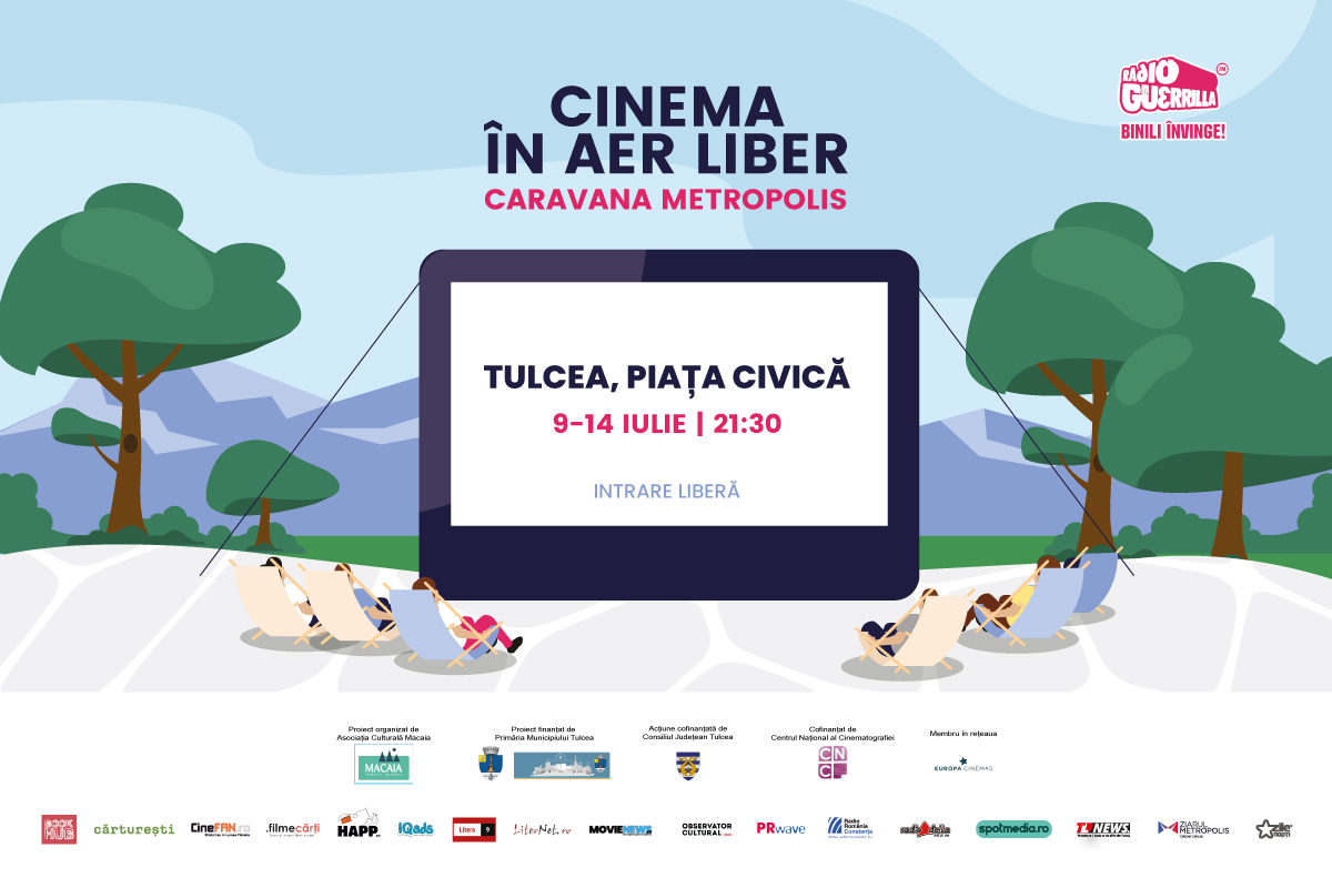 „Caravana Metropolis- cinema în aer liber” este organizat de Asociația Culturală Macaia în parteneriat cu Asociația Culturală Metropolis, membru în rețeaua Europa Cinemas. Proiect co-finanțat din bugetul local al Municipiului Tulcea. Co-finanțat de Centrul Național al Cinematografiei, acțiune co-finanțată de Consiliul Județean Tulcea.