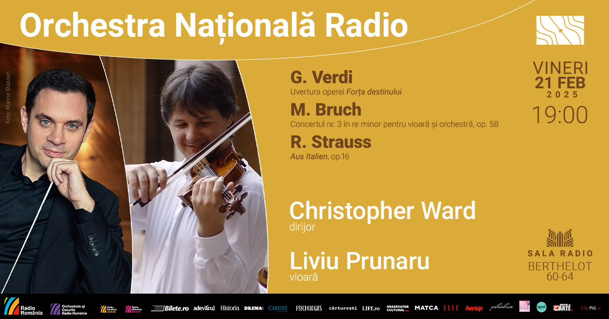 Vineri, 21 februarie 2025 (19.00), invitatul Orchestrei Naționale Radio este cunoscutul violonist LIVIU PRUNARU, care s-a făcut remarcat pe plan internațional drept concert-maestru al uneia dintre cele mai bine cotate orchestre simfonice din lume: Royal Concertgebouw Amsterdam. Ca solist, a evoluat alături de ansambluri precum Concertgebouw Amsterdam, Royal Philharmonic Orchestra, Orchestra Națională a Belgiei, Orchestra Filarmonicii din Atena, Orchestra Mayo din Buenos Aires, Orchestra Simfonică din Mississippi ș.a. De această dată, Liviu Prunaru va interpreta la București o partitură mai rar cântată în lume: Concertul nr. 3 pentru vioară și orchestră, semnat de compozitorul german MAX BRUCH. Creația a fost dedicată unui celebru violonist al vremii: Joseph Joachim, care a și interpretat solistic lucrarea la premiera de la Dusseldorf (31 mai 1891).
