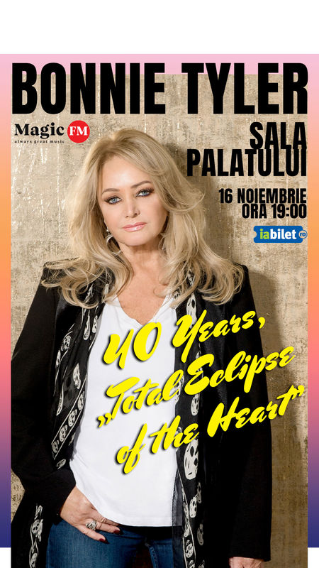 Celebra cântăreață britanică Bonnie Tyler revine în România cu un concert aniversar: 40 de ani de când a lansat un cântec intrat în legendă, „Total Eclipse of the Heart”. Vedeta galeză Bonnie Tyler va susține un concert pe 16 noiembrie, la ora 19.00, la Sala Palatului din București.