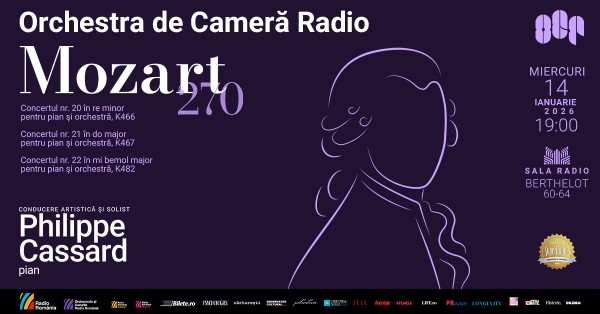 Miercuri, 14 ianuarie 2026 (de la 19.00), Philippe Cassard – unul dintre pianiștii francezi cei mai apreciați ai momentului – va evolua la București în dublă ipostază (de solist și dirijor), propunând trei concerte de Mozart într-o singură seară: concertele nr. 20, 21 și 22, trei bijuterii ale muzicii clasice. Philippe Cassard a cântat alături de mari orchestre ale lumii, ca London Philharmonic, BBC Philharmonic și Orchestre National de France.