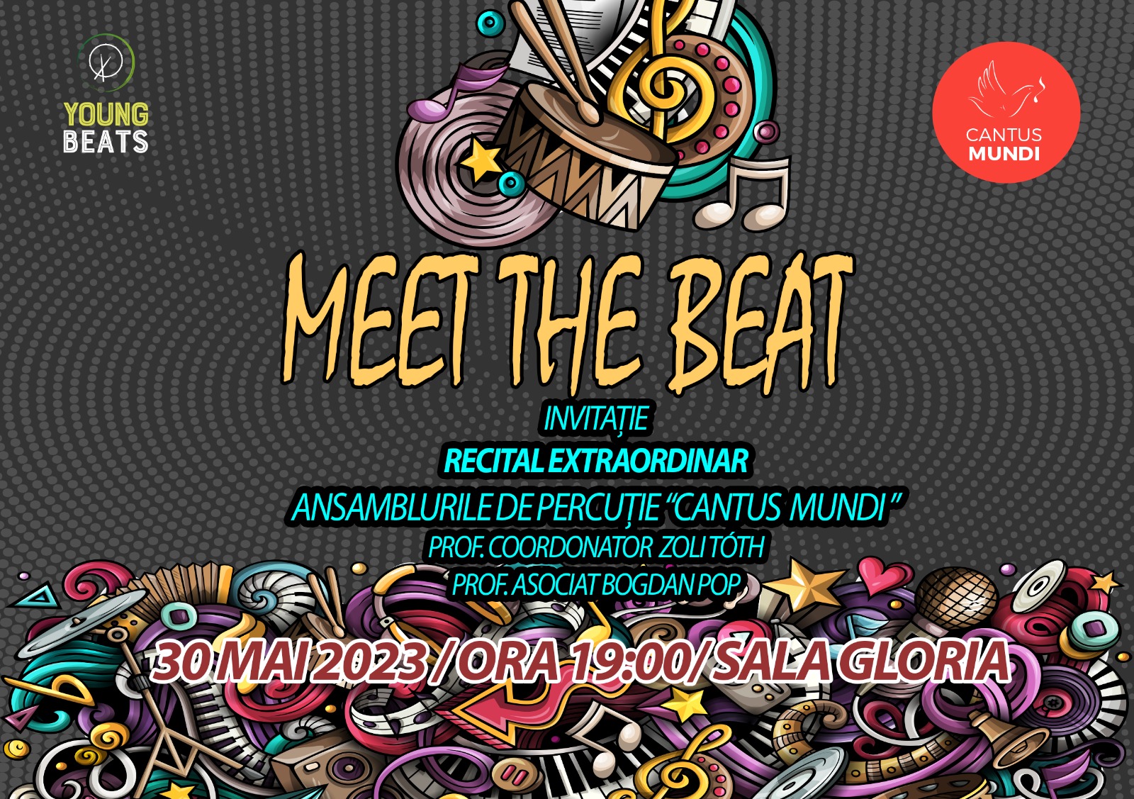 Recitalul va fi susținut de Ansamblul de percuție Young Beats, fondat de prof. coordonator Zoli Toth și Ansamblul de percuție Good Vibes, coordonat de prof. asociat Bogdan Pop. Repertoriul „Meet the Beat” va include lucrări semnate de J. S. Bach, Cl. Debussy, B. Bartok, G. Dinicu, M. Jackson, Ed Sheridan, R. Nițu, Z. Toth și alții.