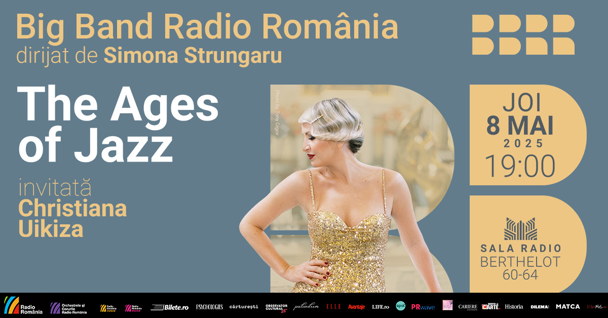 Joi, 8 mai 2025 (de la 19.00), Big Band-ul Radio România dirijat de Simona Strungaru, împreună cu solista serii – Christiana Uikiza – ne va purta prin istoria jazz-ului, în evenimentul intitulat „The Ages of Jazz”. Evenimentul este prezentat cu ocazia Zilei Internaționale a Jazz-ului (30 aprilie). Concertul va delecta audiența cu sonorități ample, în lucrări specifice din toate stilurile jazz-ului, de la Dixieland și până în contemporaneitate. Veți avea ocazia de a-i aplauda, ca soliști, pe o parte dintre membrii Big Band-ului Radio.