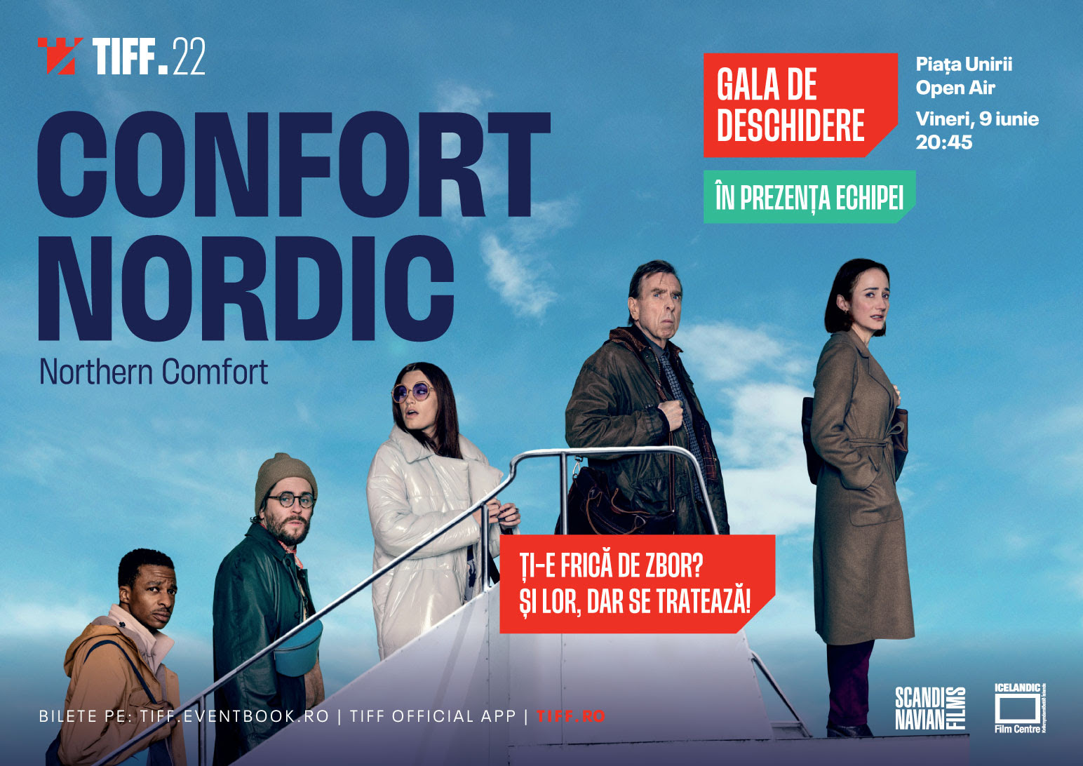 Transilvania Film anunță intrarea în cinematografele din toată țara a comediei Confort Nordic (Northern Comfort, 2022), prima producție de limba engleză a regizorului islandez Hafsteinn Gunnar Sigurdsson, cu celebrul actor britanic Timothy Spall în rolul principal. Filmată în Anglia, Franța și Islanda, comedia despre frica de zbor este o cursă contra cronometru prin aer și printre nămeți, o aventură improbabilă în care anxietatea e contagioasă, iar paranoia pândește de după colț.