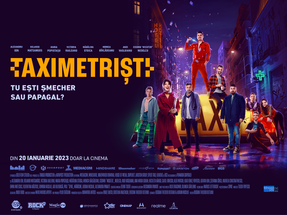 Taximetriști, comedia regizată de Bogdan Theodor Olteanu, care invită spectatorii în viața de noapte a Bucureștiului prin intermediul a doi prieteni taximetriști și a clienților lor, îi aduce împreună pe același generic pe Monica Bîrlădeanu și Andi Vasluianu. Filmul are premiera în cinematografe pe 20 ianuarie, iar informațiile despre biletele puse deja în vânzare sunt disponibile pe site-ul taximetristi.film.